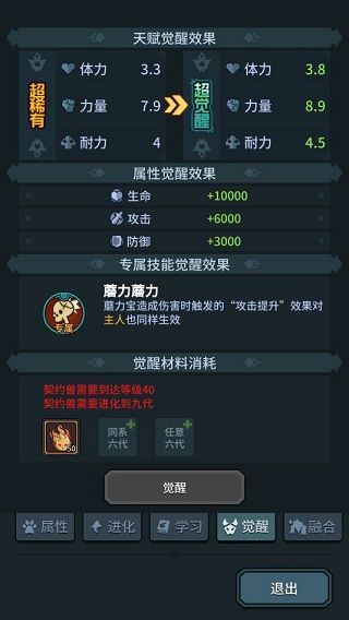 进化预览直观呈现属性增幅,材料需求清晰标注。精华来自同系副本,巨心则需击败特定领主——路径明确,但绝不轻松。