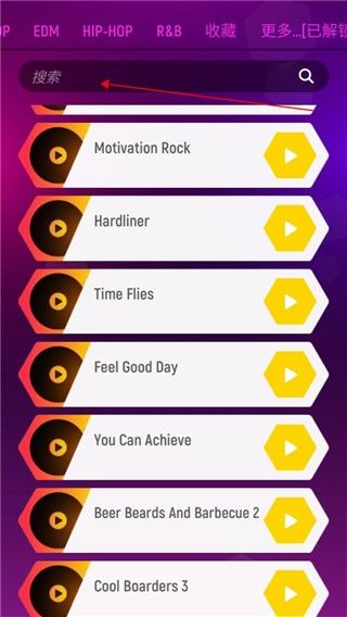 节奏弹球游戏玩法进入节奏弹球后,映入眼帘的是风格迥异的曲目列表,涵盖电子、摇滚、民谣等多种类型,支持关键词快速检索心仪旋律。