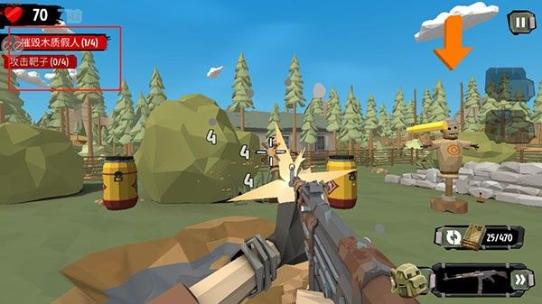 根据左上角动态提示执行指定动作,例如击落全部飞盘靶、限时命中移动靶心或连续爆头三名模拟敌人。