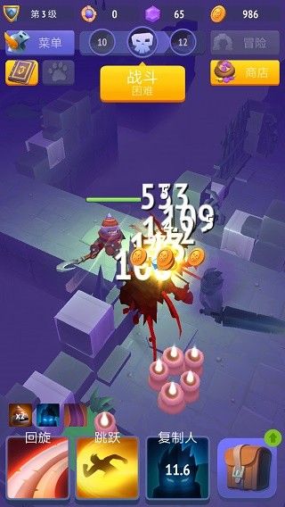 地牢越深,小怪提供的金币收益越丰厚。与其在低层反复滞留,不如稳步推进,在动态难度中自然获取更高回报。随着等级提升,新技能如影分身也将解锁,复制出的协同单位将为你分担压力,拓展输出维度。