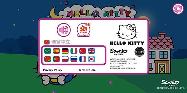 凯蒂猫晚安游戏中文版游戏攻略进入游戏后,轻点右上角的齿轮图标,进入系统设置界面。