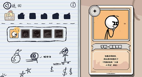 亨利火柴人怎么收集人物游戏中散落着形形色色的配角,他们或惊慌奔逃,或冷眼旁观,或藏身画框暗格之中。每位角色都有独立档案,收录时需在动态场景中精准捕捉其出现时机。部分人物仅闪现一帧,需反复回放关键片段;有些则隐匿于背景壁画深处,放大画面才能辨清轮廓。点击图标即刻建档,蓝色文字代表尚未解锁,红色则意味着已收入囊中,附带一段带点黑色幽默的角色小传。
